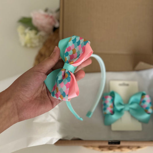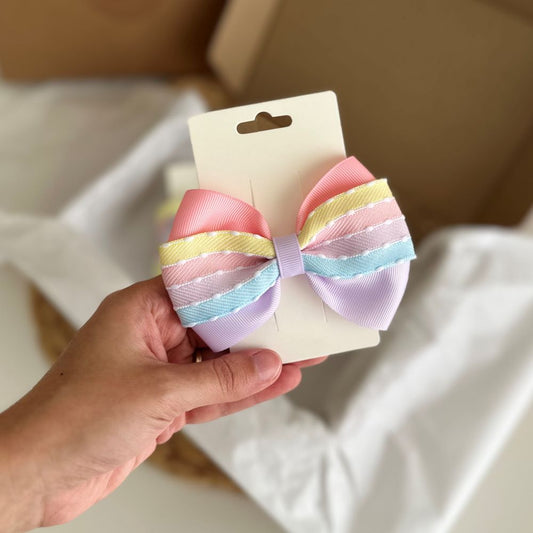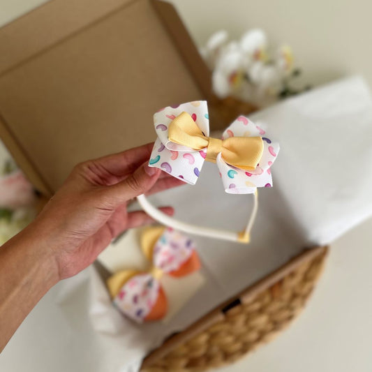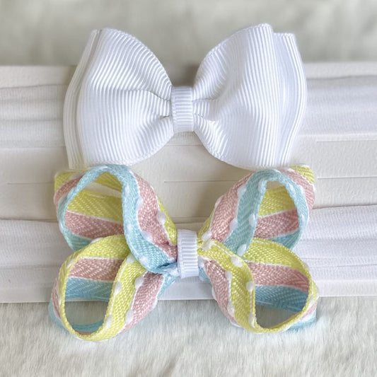 Kit 2 Laços Arco-íris Rosa + Bandolete